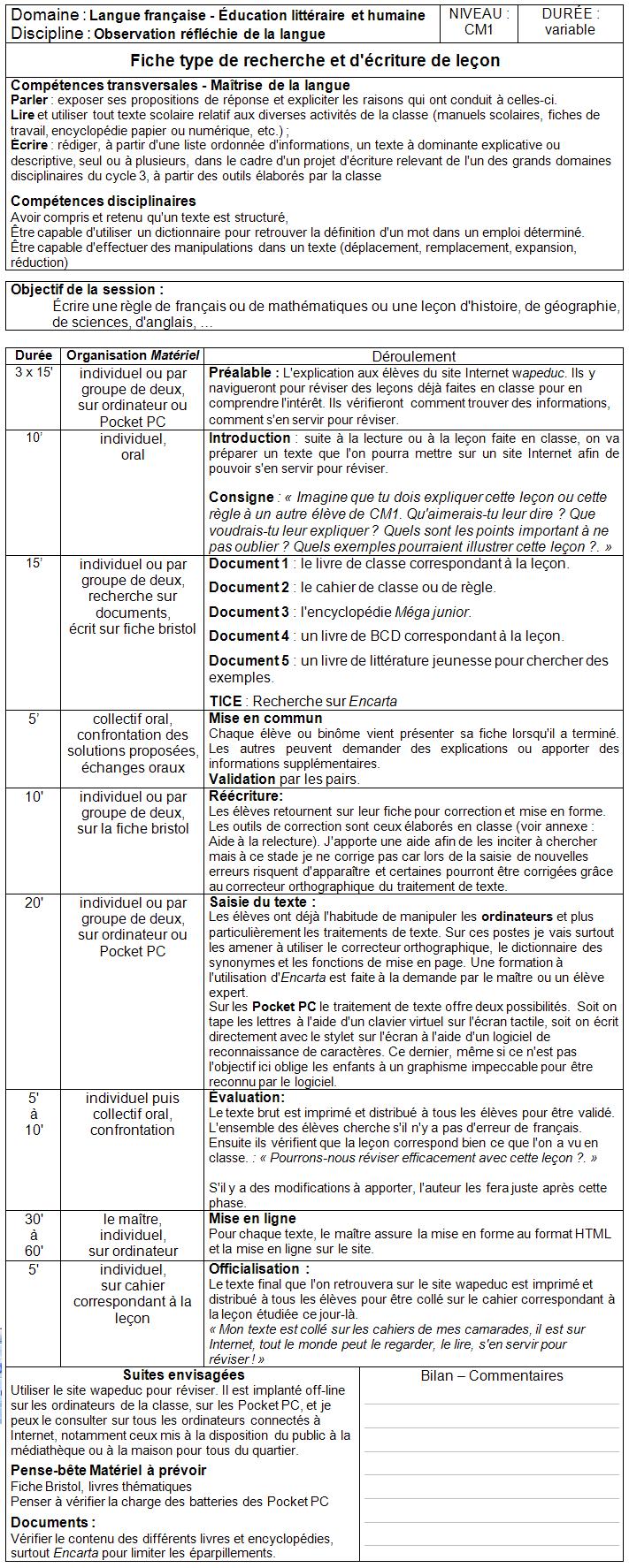 Annexe 5 - Exemple pour une leçon de sciences