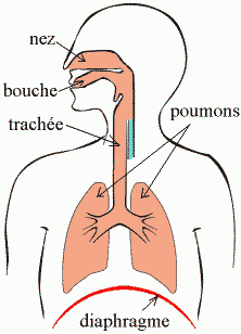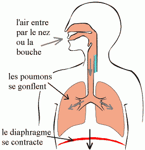 de l'air entre par la bouche ou le nez, les poumons se gonflent.