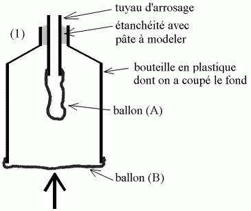 lorsque l'on tire sur le ballon (B), en bas de la bouteille,