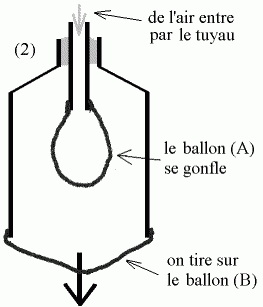 de l'air entre dans le tuyau, le ballon (A) se gonfle.